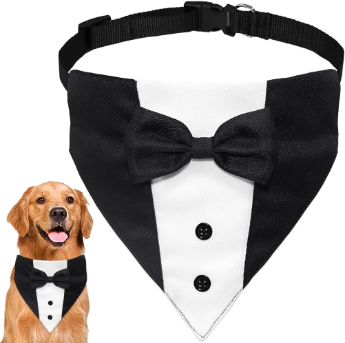 Dog Tuxedo Dog Suit Dog Wedding Bandana Collar with Bow Tie, Adjustable Dog Tux Formal Dog Costumes, Engagement Birthday Tuxedo for Small Medium Large Dogs Pets (Large: Neck 15”-25”)